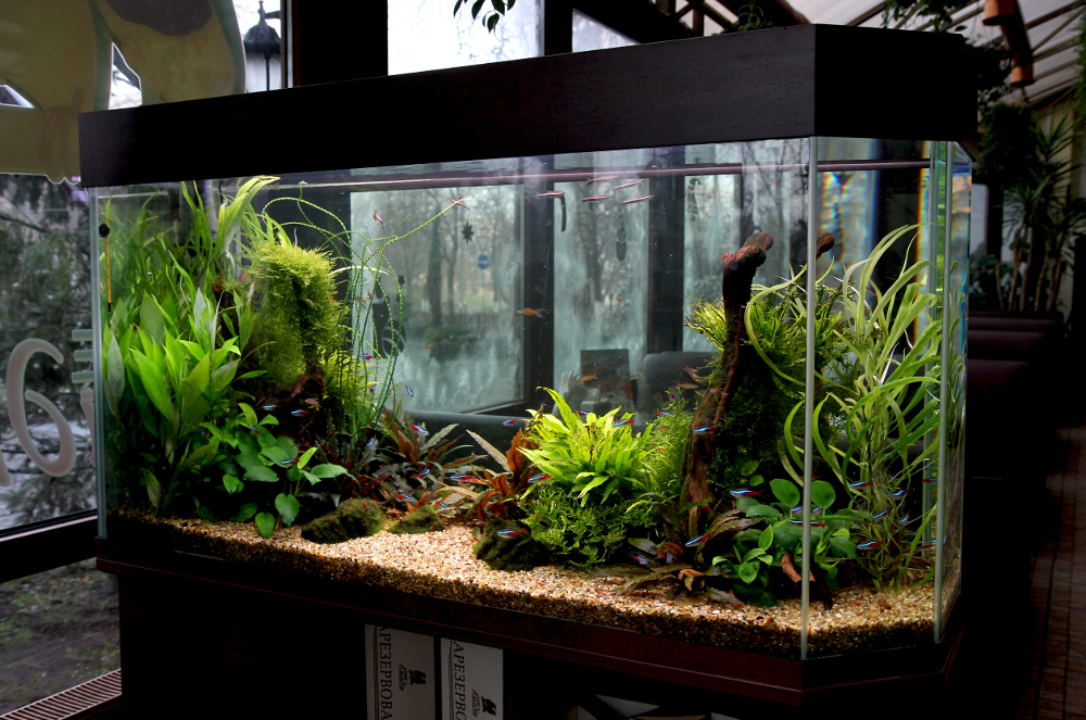 В наше время, когда темпы жизни растут и человек окружен урбанистическими строениями современного города, все важнее становится место, где мы можем отдохнуть, снять стресс и просто расслабиться. Именно для этого каждый стремится обустроить свой дом наилучшим образом. Создаются и воплощаются в жизнь интересные дизайн-проекты самых разнообразных стилей и течений… но… но все это безжизненно, пока не войдет в дом Ее Величество Природа. Растения и животные наполняют жилище жизнью и радостью. Уникальным симбиозом стильного, даже порой статусного элемента интерьера и частички живой природы в нем является аквариум. К любому дизайну в помещении человек привыкает и со временем перестает обращать на него внимание, но с аквариумом этого не произойдет никогда! Он живой, динамичный, интересный и в то же время расслабляющий, успокаивающий человеческую психику после тяжелого трудового дня. Аквариумисты прекрасно знают, что гости всегда достаточно бурно и восторженно реагируют, заметив красивый аквариум. Они восхищаются его красками, завороженно смотрят на плавно колышущиеся водные растения, медленно поднимающиеся пузырьки воздуха; с оживлением наблюдают за интересным поведением аквариумных рыбок или оригинальных, становящихся все более популярными, креветок. Этот восхитительный уголок живой природы может быть и у Вас дома или в офисе! А как полезно и познавательно будет современным детям отвлечься наконец от компьютера и приобщиться к завораживающему и увлекательному подводному миру!
