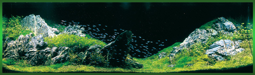 Или «Пейзаж под водой" (англ. Aquascape, от aqua — «вода» и scape — «пейзаж»). Завораживающе красивое оформление, настоящее композиционное искусство, набирающее все больше популярности в мире. Основной задачей дизайнера является воссоздание впечатления бескрайнего пейзажа в ограниченном пространстве аквариума в соответствии с определенными правилами.